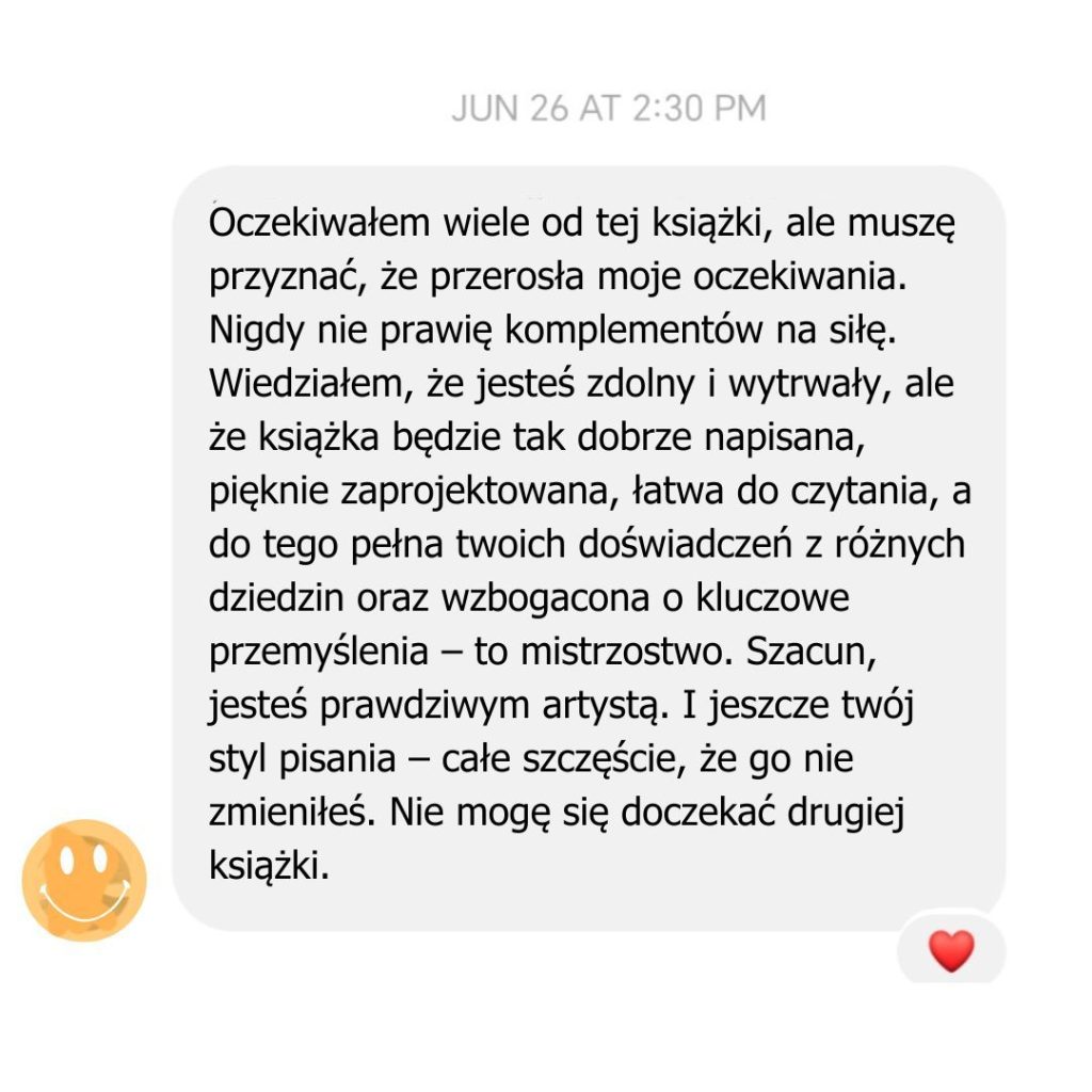 Cała wiedza jest przedstawiona przez pryzmat humorystycznych i prawdziwych historii z mojego życia. Właśnie dlatego czytelnik nie ma wrażenia, że czyta podręcznik. Książka wciąga, a wszystkie życiowe lekcje przyswajane są podczas zabawnej lektury! Historia napisana jest w taki sposób, że chętnie czytają ją nawet osoby, które zwykle opierają się książkom.