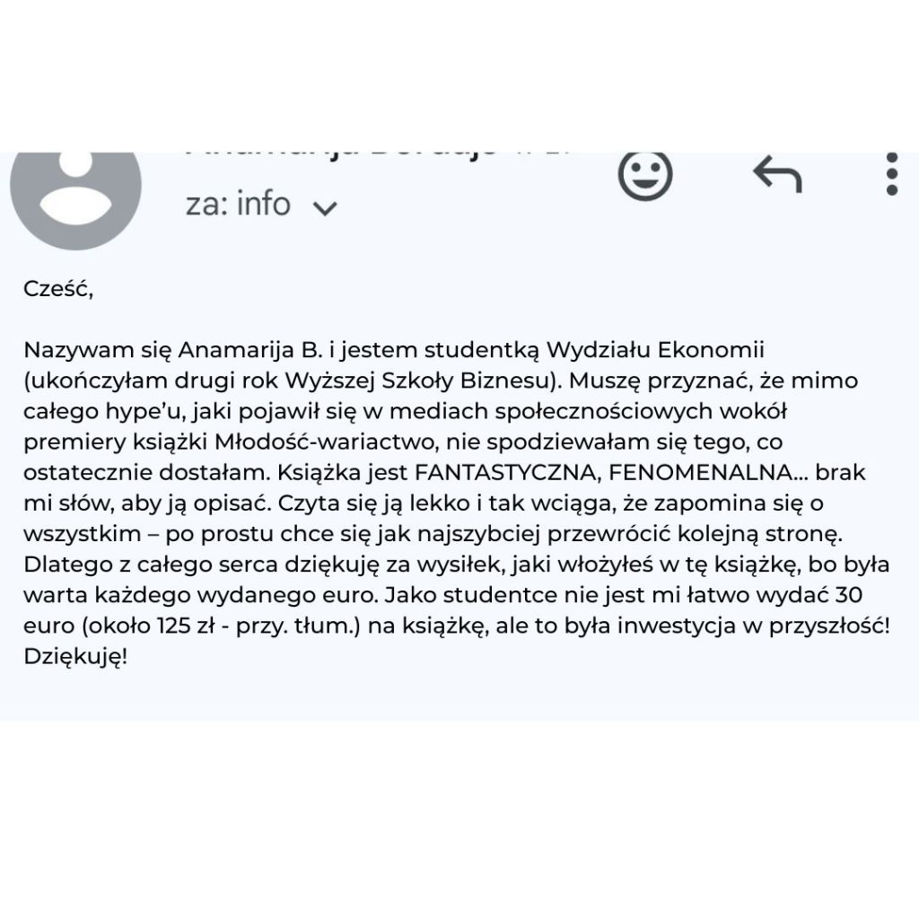 Obiecuję, że otrzymasz ode mnie e-mail tylko w przypadku naprawdę ważnych wiadomości.